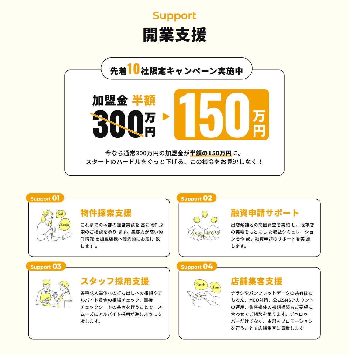 ・開業支援などのサポート充実