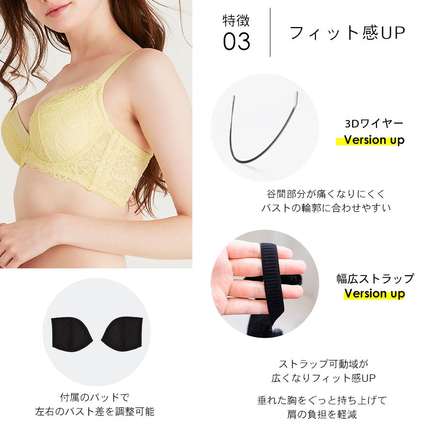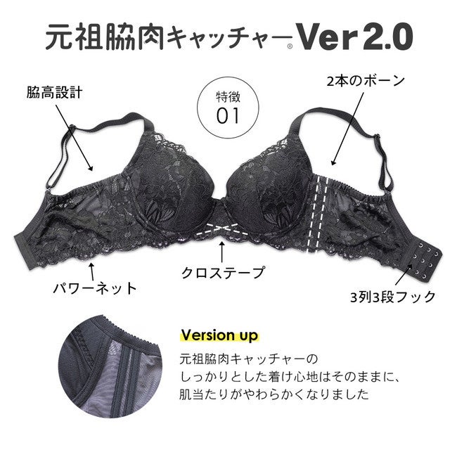 年齢を重ねるにつれて、脇や背中に肉がついてきたり、妊娠・授乳や体重の増減などで胸が下垂してブラジャーが合わなくなってきたりなど体形のお悩みが増えてきます。「元祖脇肉キャッチャー®Ver2.0」は、快適な着け心地でありながら、そんなお悩みを解消する高機能ブラジャー。これまでBカップからJカップまでの展開でしたが、さらなるグラマーサイズの方のご希望の声にこたえ、新たにKカップまでの展開となりました。BカップからKカップ、アンダーサイズ65~90までと、合計54サイズから選べます。