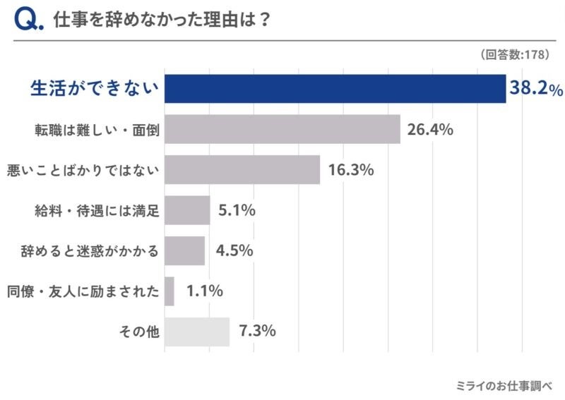 - 辞めない理由は「生活ができないから」が1位で38.2%