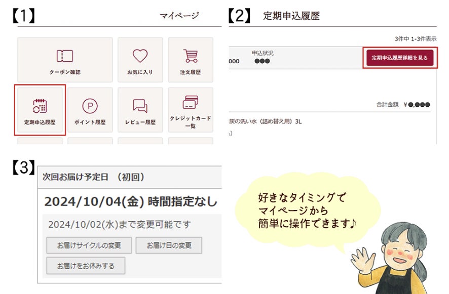定期購入サービスがさらに便利に!お届けサイクルをマイページで自由に変更可能になり、新規の方は「Amazon Pay」を利用可能です。お得な割引や送料無料特典も充実しており快適にご利用いただけます!