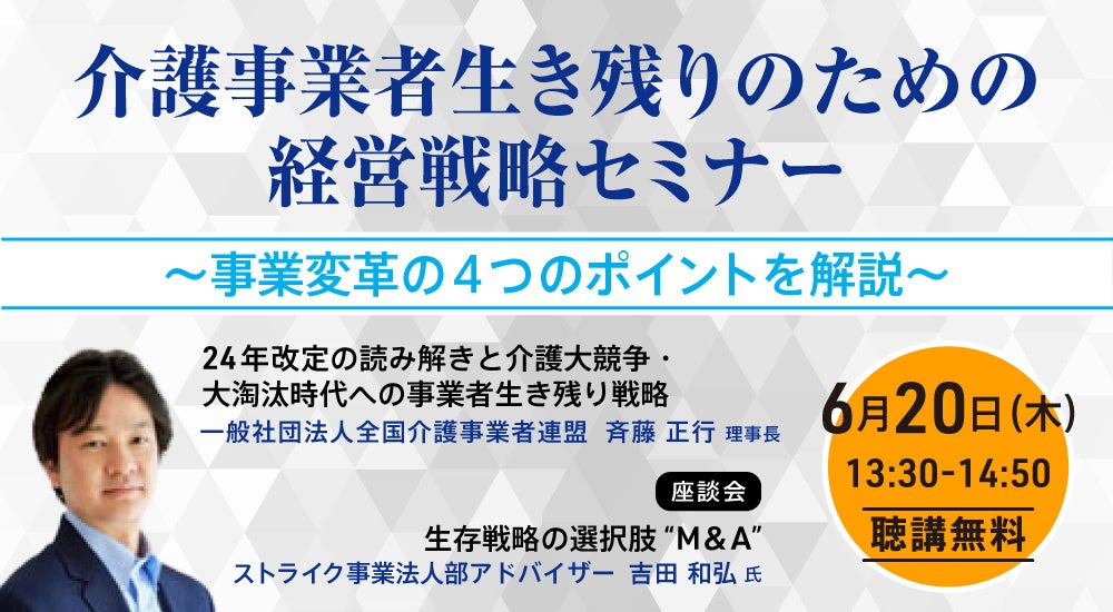 <セミナー情報>6月20日(水)オンライン開催|介護事業者生き残りのための経営戦略セミナー