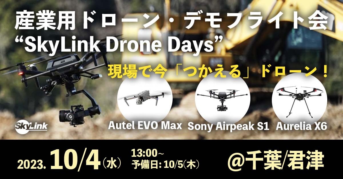 好評にお応えして! 現場で活躍する「つかえる」産業用ドローン一挙に集結! 産業用ドローン・デモフライト会 <SkyLink Drone Days:10月4日/千葉・君津>