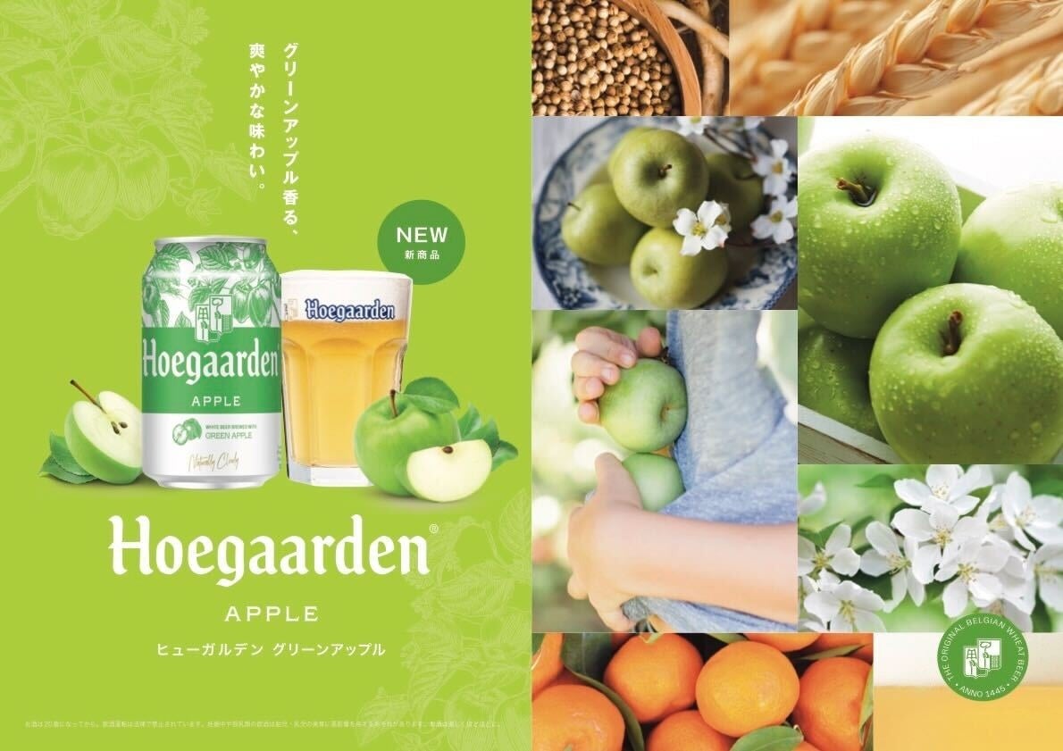 約600年の歴史を持ち、世界を魅了するベルギーホワイト「Hoegaarden(以下、ヒューガルデン)」は、秋に旬を迎えるグリーンアップル香る、爽やかな味わいの新感覚フルーツビール「ヒューガルデン グリーンアップル」(Hoegaarden Apple)を新発売いたします。10月9日(水)からは先行して渋谷キャストで開催中の「Hoegaarden BEER GAARDEN」(ヒューガルデン ビアガーデン)にて提供を開始し、10月28日(月)から期間・数量限定でコンビニエンスストア、スーパーマーケット、リカー専門ショップ、オンラインストアにて発売を開始します。