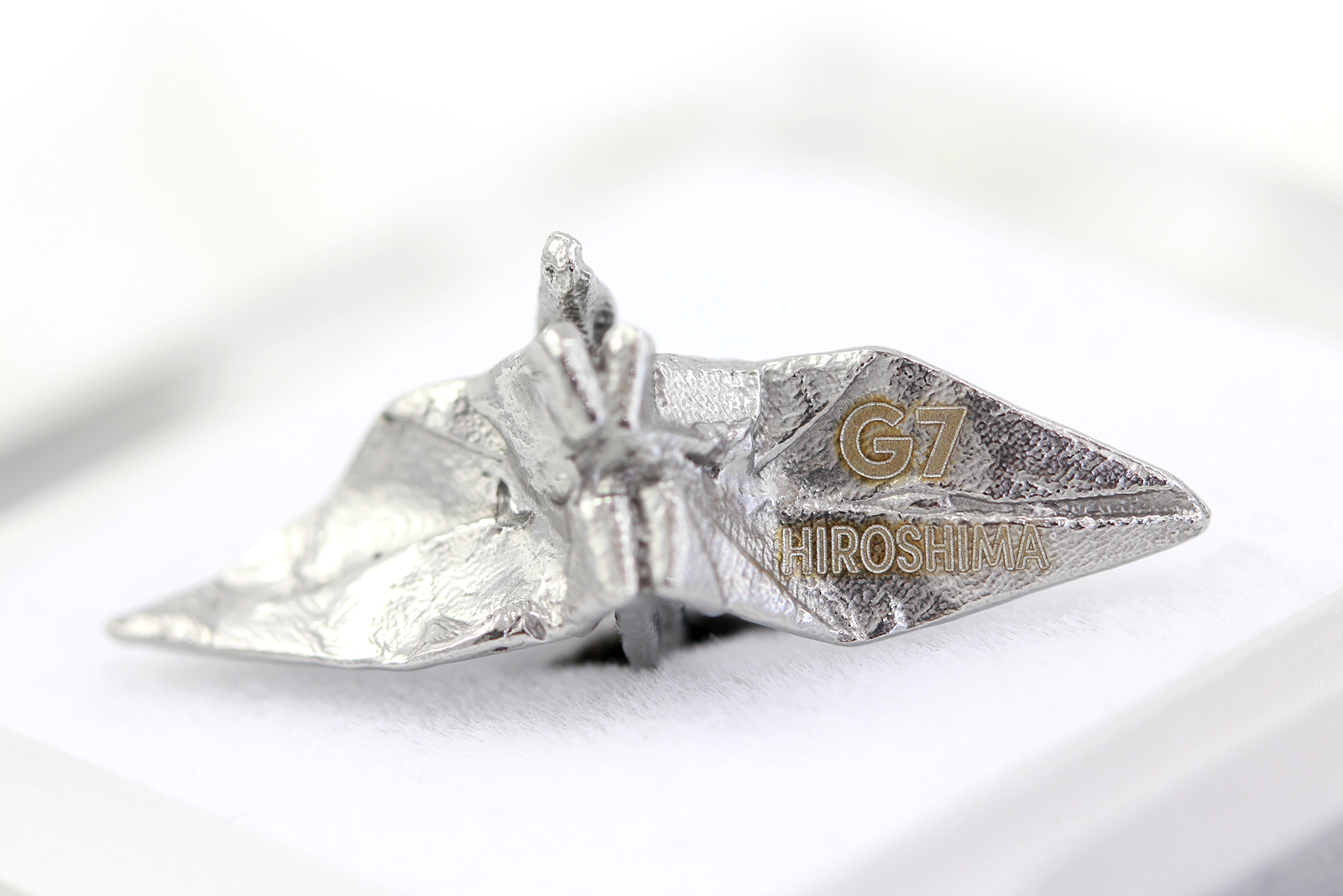 G7首脳らが平和記念資料館で決意を示した場所の机上にあった折り鶴「SADAKO」は、説明書きと共に、各国の首脳をはじめ、サミット関係者に贈られました。羽の裏には「G7」「HIROSHIMA」と刻印が施されています。