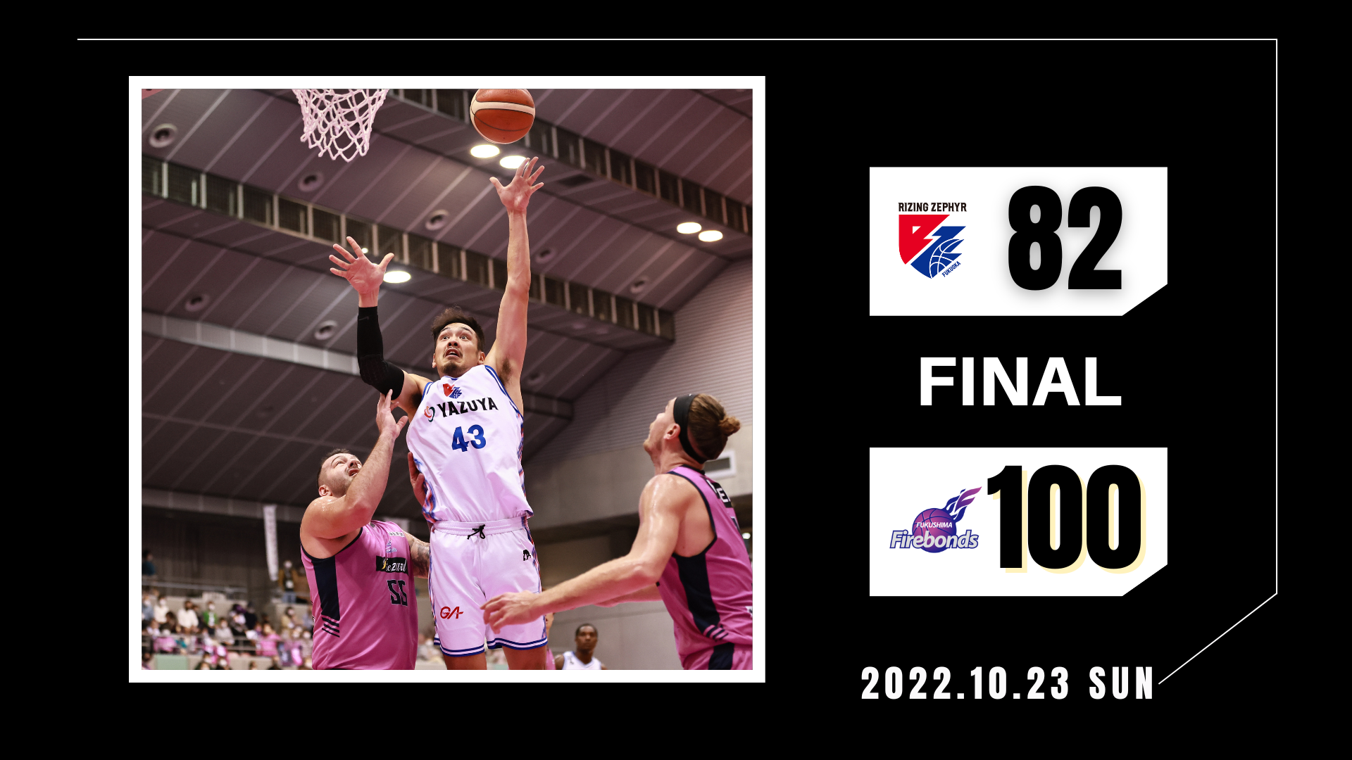 2022年10月23日(日)に開催されましたBリーグ第4節【ライジングゼファーフクオカvs.福島ファイヤーボンズ】において“福岡82-100福島”の結果となりましたことお知らせいたします。