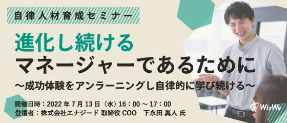 この度、習慣化プラットフォームを開発・運営する株式会社WizWe(ウィズウィー、所在:東京都千代田区、代表取締役CEO:森谷 幸平、以下「WizWe」)は、進化し続けるマネージャーであるために~成功体験をアンラーニングし自律的に学び続ける~と題したセミナーを、2022年7月13日(水)に開催いたします。