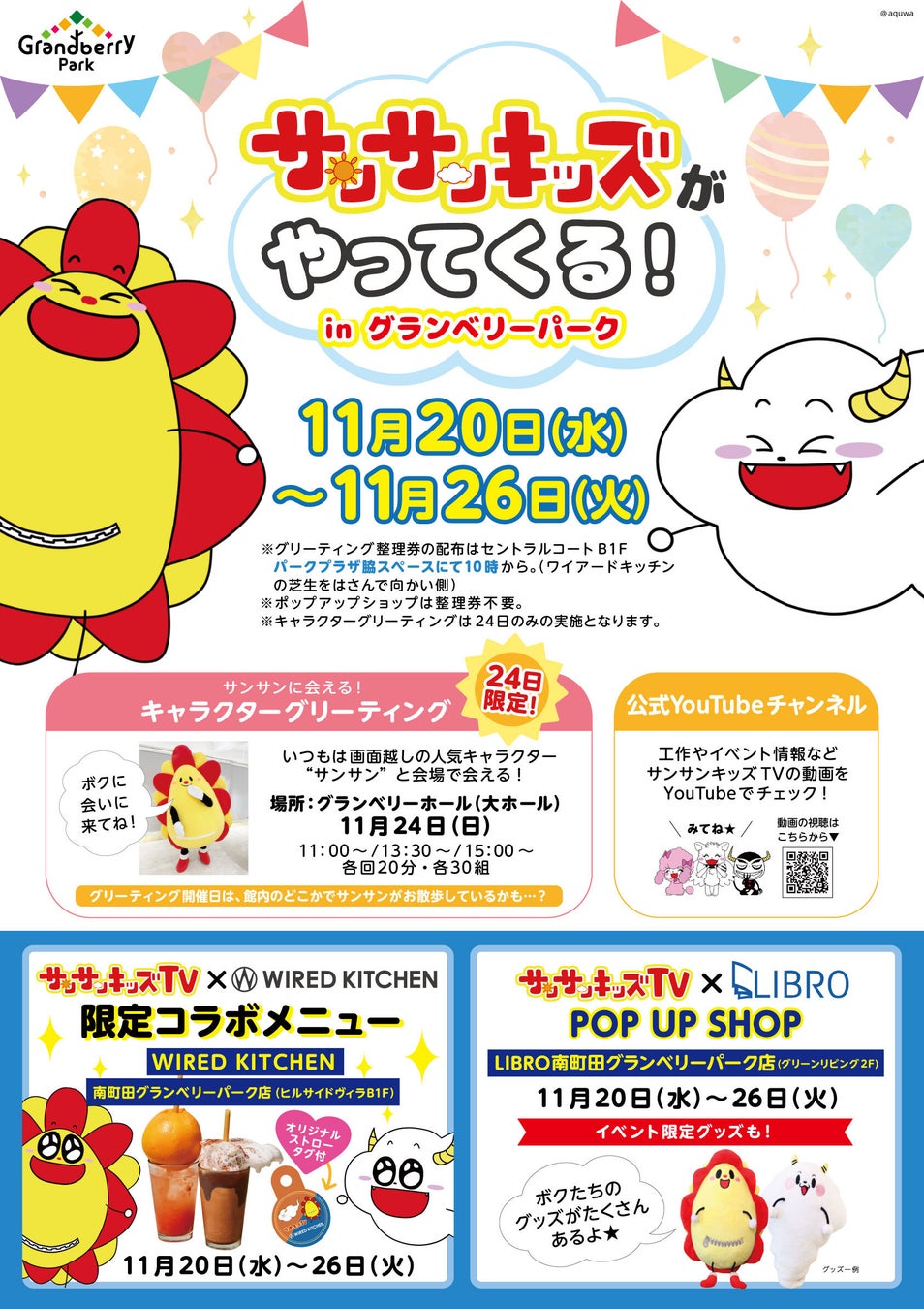 【ご案内】11/24 サンサンキッズ グリーティング・撮影会について|イベント|グランベリーパーク