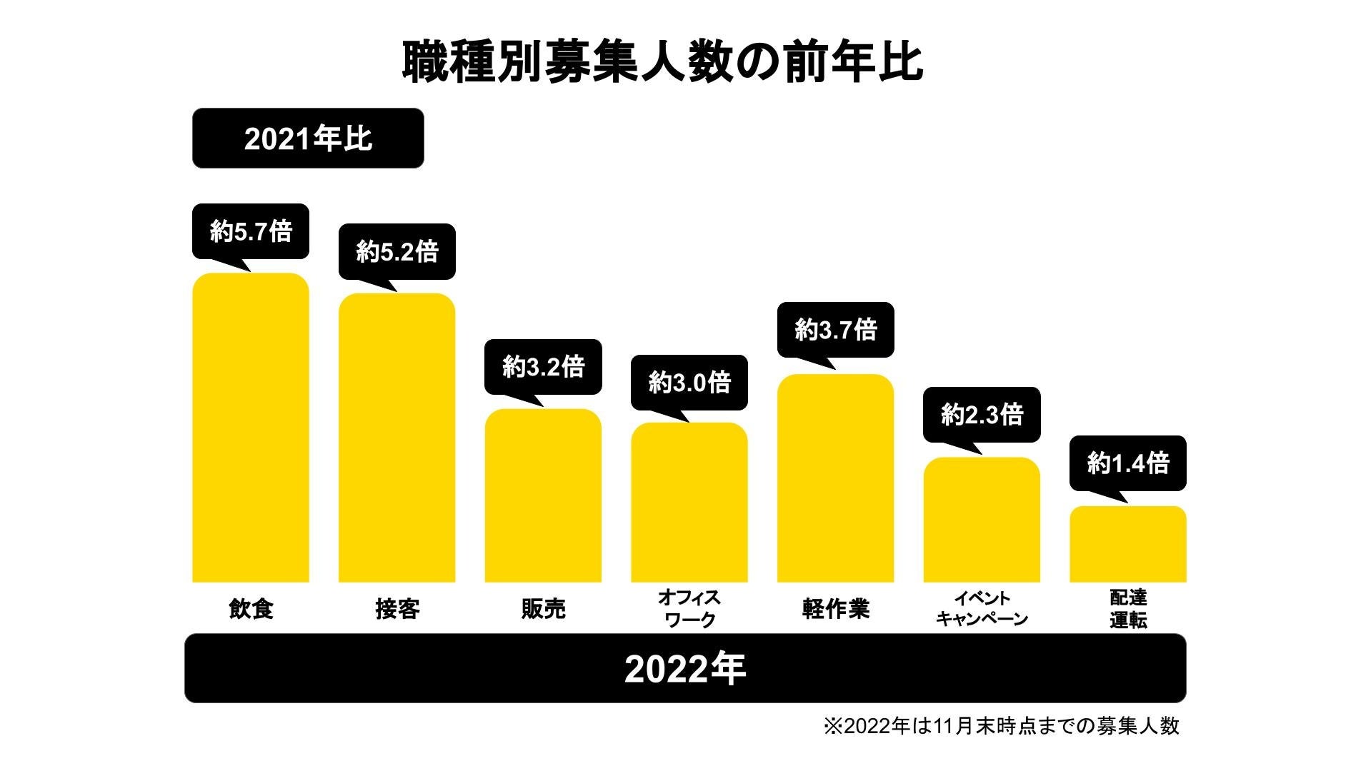 各職種で前年超えの募集人数となり、飲食や接客では5倍以上に。