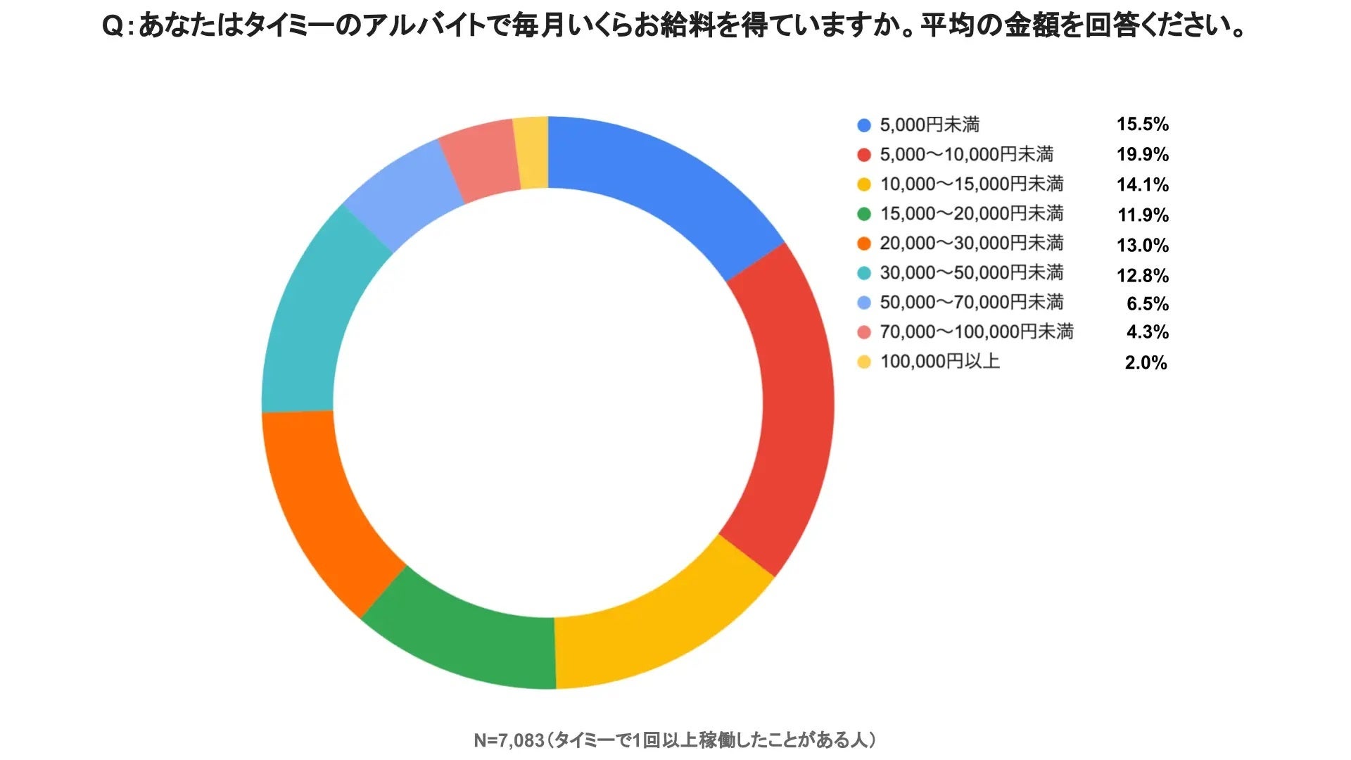 さらに、タイミーのバイトで得た毎月の収入の中央値は、1ヶ月あたり15,000〜20,000円程度ということもわかりました。