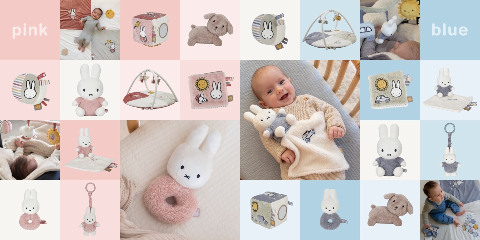 ふわふわでやわらかく、いつまでも触っていたくなる素材感で、新生児期から安心してお使いいただけるソフトトイ。ベビー用品らしい甘さに、グレイッシュな落ち着きあるテイストが溶け込み、インテリアにもそっと馴染みます。定番のミッフィーのぬいぐるみはもちろん、しかけの豊富なプレイマットや、お出かけにぴったりなぶるぶるトイ、ミッフィーの友だち、子犬のスナッフィーのぬいぐるみなど、21商品をラインナップしています。