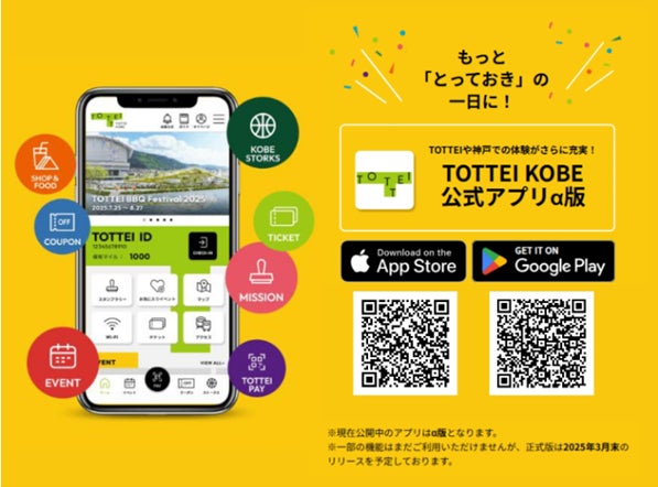 「TOTTEIや神戸での体験がさらに充実するアプリ」をコンセプトに、イベント前後もお楽しみいただけるさまざまな機能のラインナップを開業に向けて公開していきます。今後はアリーナやTOTTEI PARK、レストランやカフェなどのキャンペーン応募やTOTTEI周辺エリアと連携したスタンプラリーなどのエンタメ要素と、独自決済のTOTTEI PAY、デジタルクーポンなど、使えば使うほどお得になる機能を順次公開していきます。また、チケット発券機能やTOTTEI内で使えるWi-Fiへの優先接続など実用性の高い機能も順次アップデート予定です。