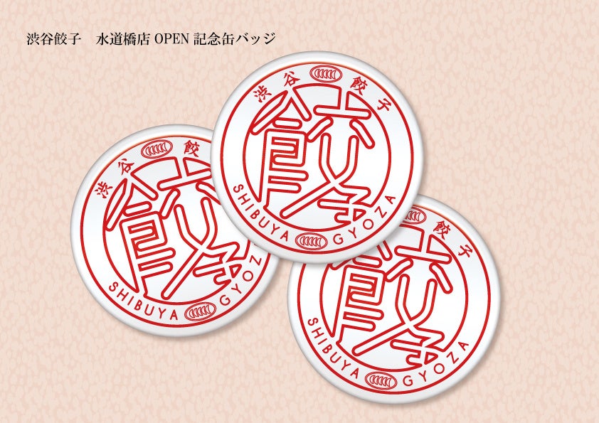 こちらのオープン記念といたしまして『渋谷餃子新ロゴ入り缶バッジ』を限定1,500名様にプレゼントいたします。