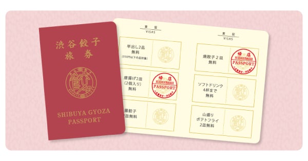 押印箇所により特典内容が変化する渋谷餃子パスポートで、素敵な渋谷餃子巡りの旅に皆さまを誘います!
