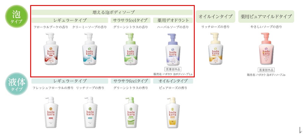 ※4 (医薬部外品)販売名:ハダカラ 泡ボディソープLa