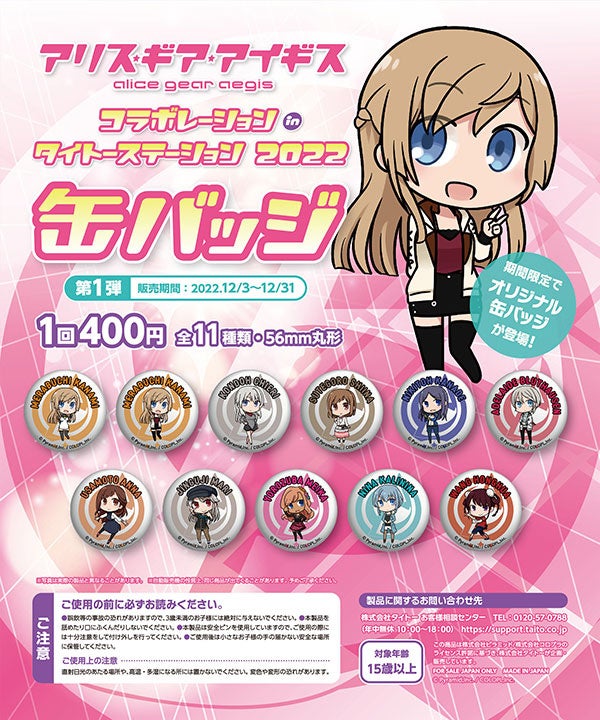 - 「アリス・ギア・アイギス」缶バッジ2022 第1弾 (全11種)/1回400円(税込)
