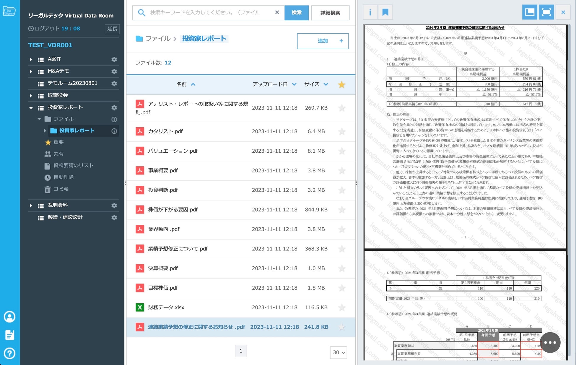 これらの機能により、「リーガルテックVDR 投資家レポート」は投資家レポートの安全な共有において重要な役割を果たします。