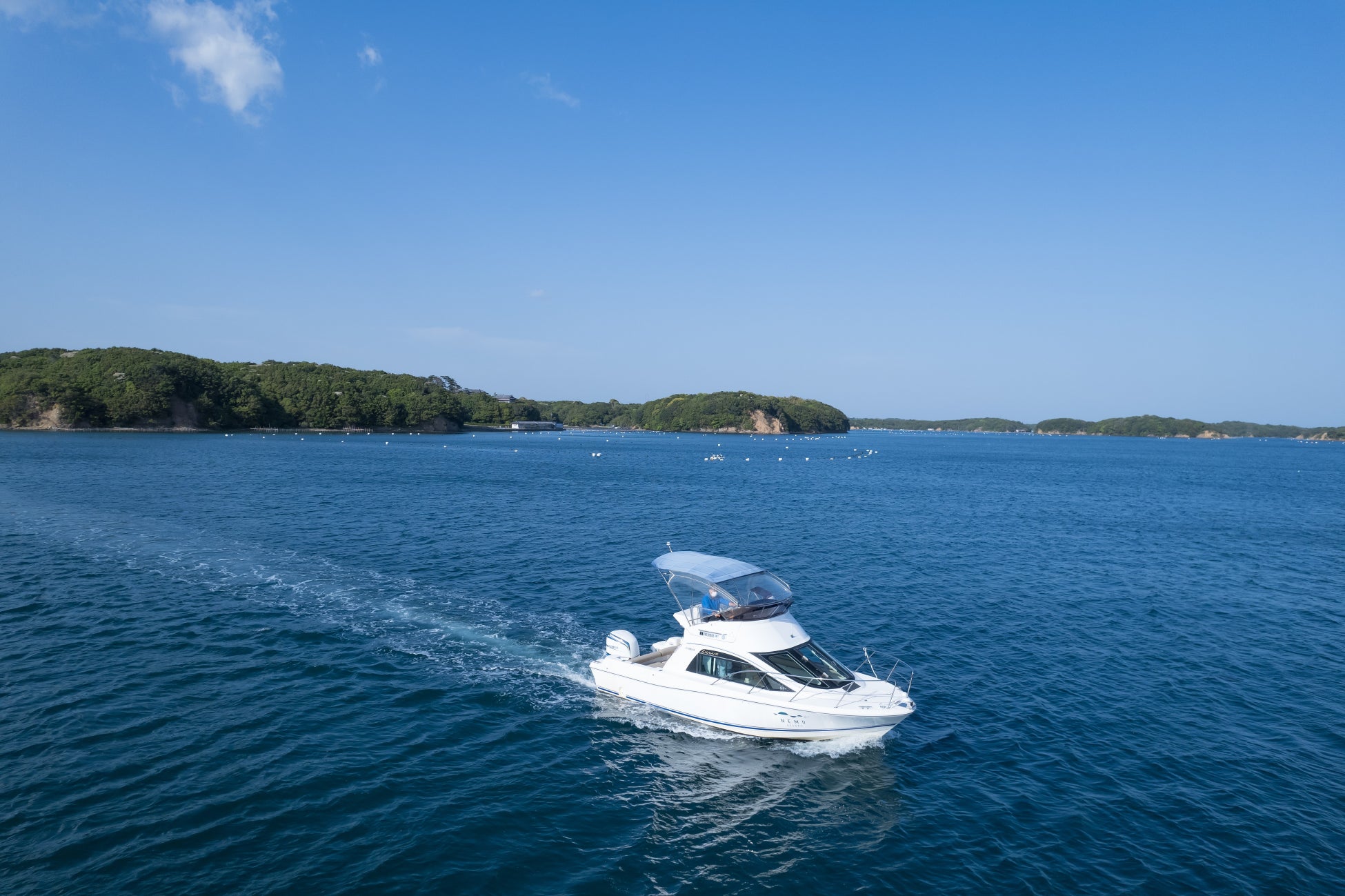 真珠のふるさとの入り組んだ島々と養殖筏の間を縫いながらクルージング体験もできます。伊勢志摩の海を知り尽くした船長がご案内いたします。