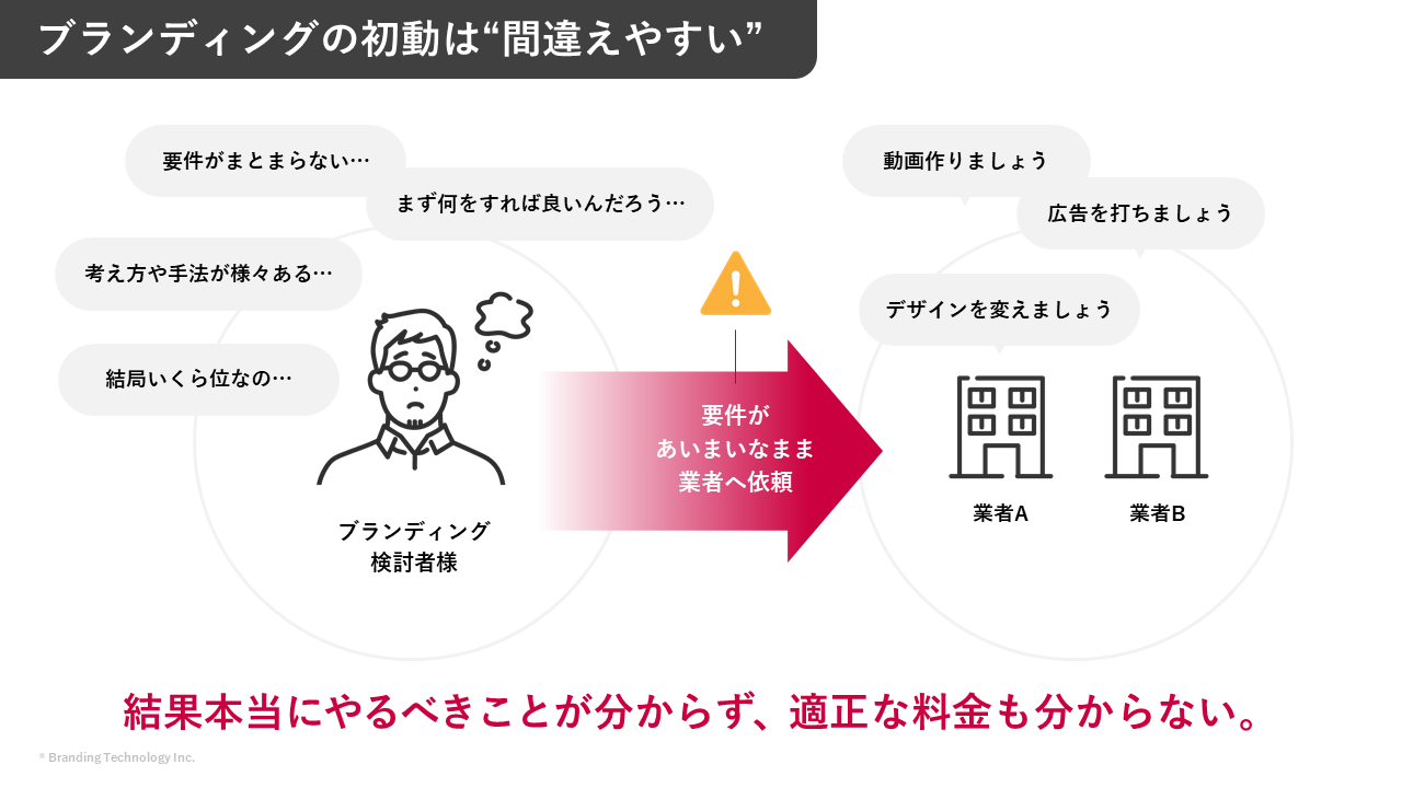 当社のお客様からも「ブランディングをどう進めれば良いか分からない」「相場や各業者の特徴が分からない」などの相談を頂くケースが多くあります。