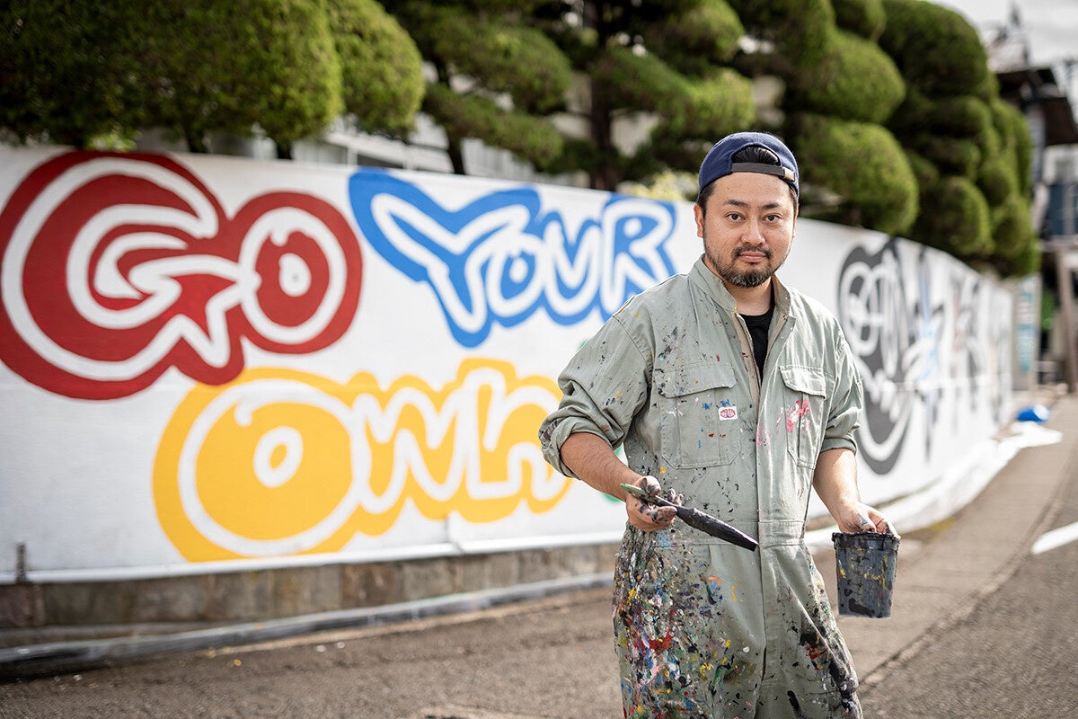 6日間という限られた期間の中で完成された『GO YOUR OWN WAY』。作品を正面から見ると、“子どもたちの為に”をミッションとしたアーティストコレクティブ『コペルズ』でも共に活動している松本セイジ氏が昨年手掛けた『ねずみのANDY』と同居した風景となります。さまざまなアーティストの作品が1つの町で共存する、まさに「JAPAN WALLS」ならではの魅力です。