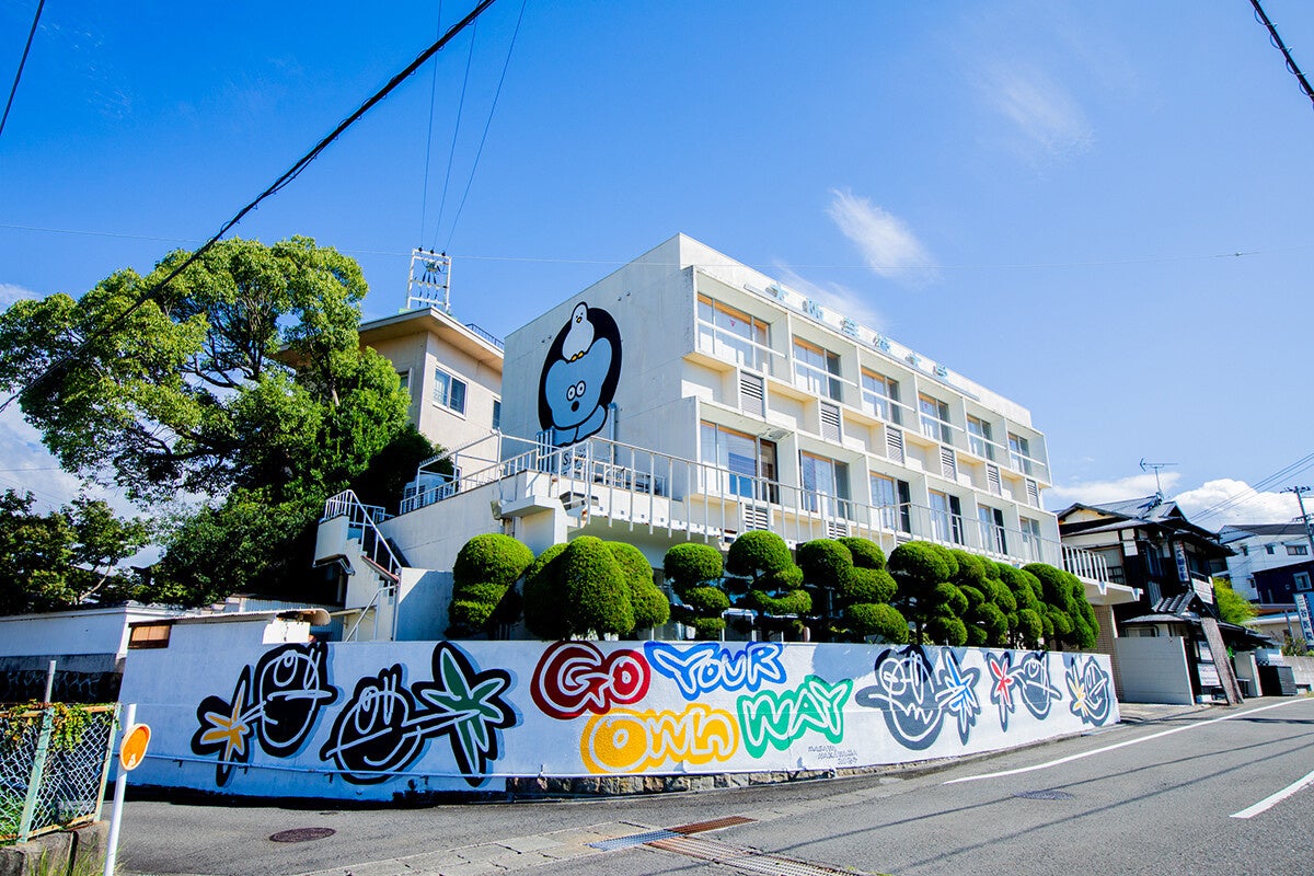 日本で9度目の開催となる今回は、世界のアートカルチャーシーンを牽引する10名のアーティストが集結し、中山氏はその中の1人として選ばれました。中山氏が作品を描いた場所は、塚本学院白浜研修センターの外壁。普段から壁画の経験は多数あるものの、極端に横に長くカーブ掛かっている外壁へのアートは、中山氏にとって1つの挑戦であったそう。