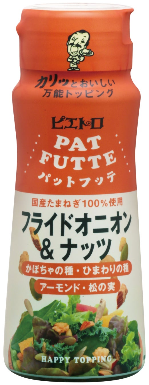 3月25日(月)から4月7日(日)の間、お食事と一緒に新登場のサラダ3品のいずれかをご注文のお客様に、大人気のトッピング調味料「ピエトロ PATFUTTE フライドオニオン&ナッツ」をプレゼントいたします。ご家庭でも、いろいろなお料理にかけてぜひお楽しみください!