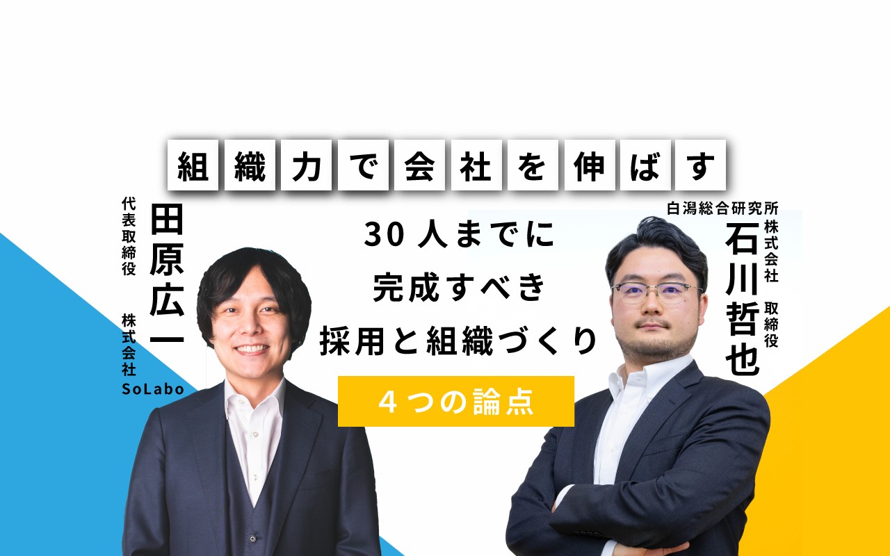 株式会社SoLabo(本社:東京都千代田区、代表取締役:田原広一)は、株式会社白潟総合研究所(本社:東京都中央区、代表取締役社長:白潟 敏朗)と共同で、採用と組織作りをテーマとした無料セミナーを1月24日火曜日に開催いたします。