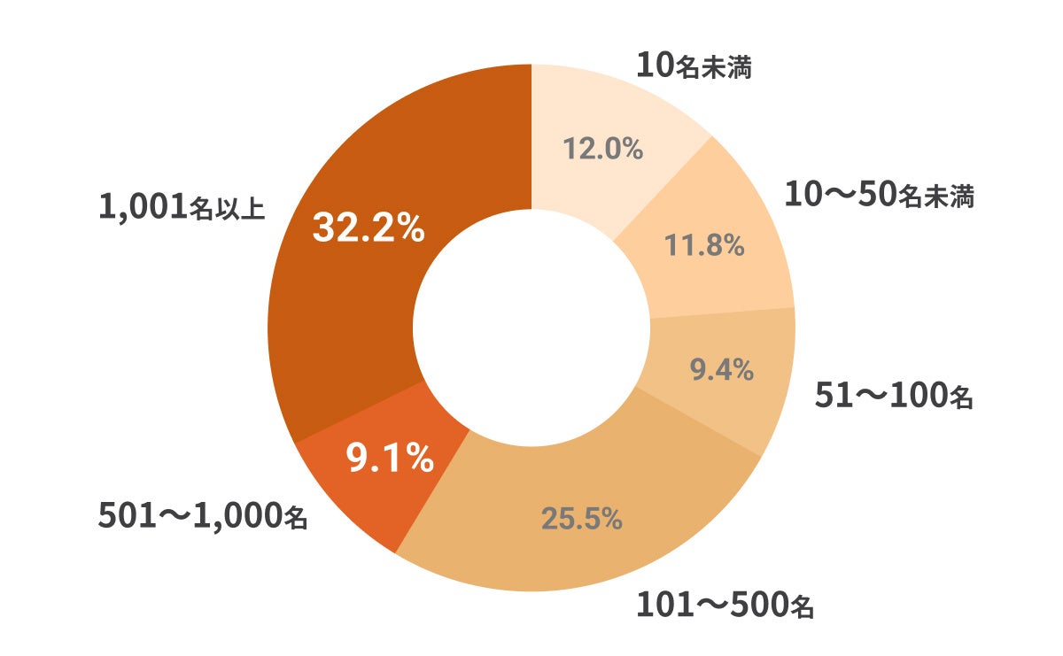 現地参加者のうち、従業員数500名以上の企業に所属する方が全体の43%を占めており、