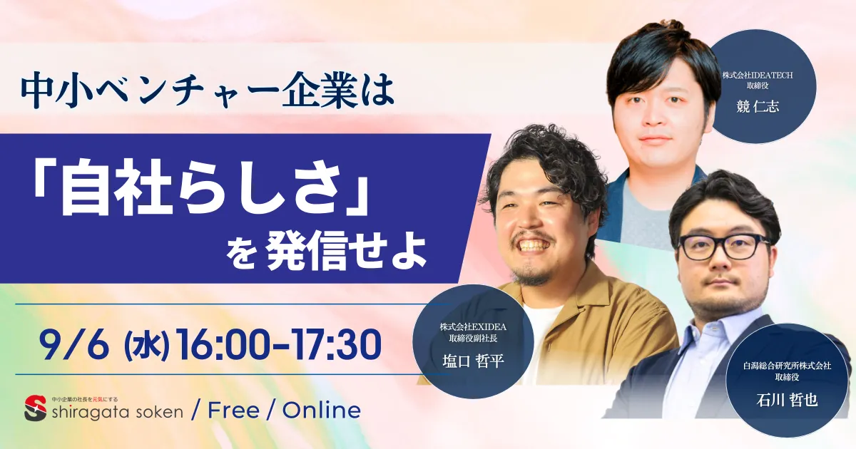 【IDEATECH × EXIDEA × 白潟総合研究所|共催セミナー】中小ベンチャー企業は「自社らしさ」を発信せよ