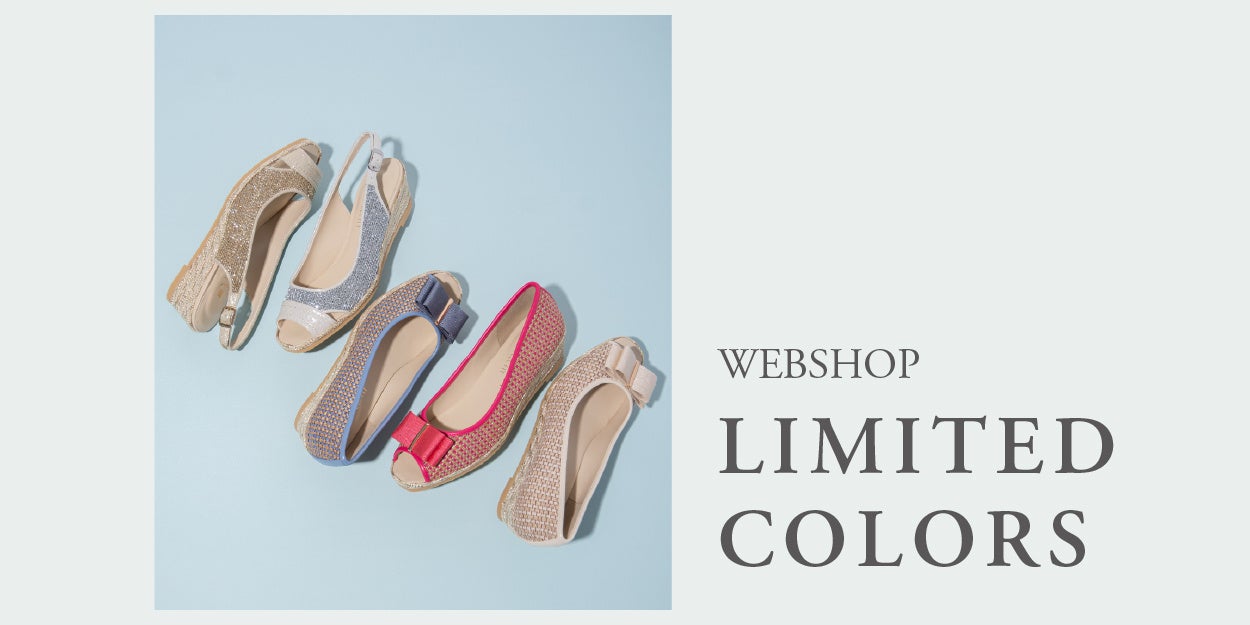 毎年お客様より大変ご好評いただいているジュート巻きウェッジアイテムのWEB限定カラーが今年も登場!今年は歩きやすさも抜群な5㎝台ヒールで3種類、春夏に向けてワクワクするような彩りカラーをご用意いたしました。これからのお出かけに大活躍間違いなしのアイテムです。