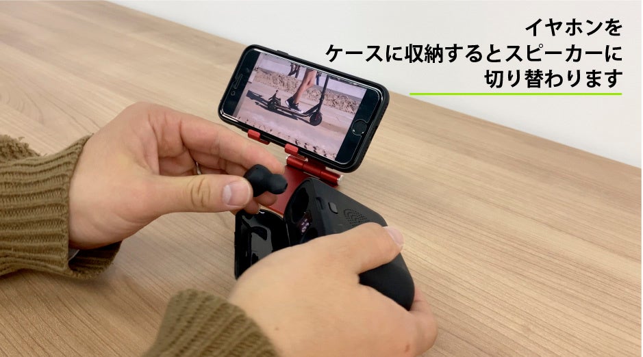 - イヤホンをケースに収納すると、イヤホンからスピーカーへ音声出力が切り替わります。
