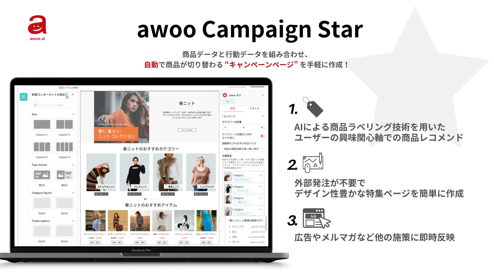 AIテックカンパニーのawoo、ECサイト向け新サービス『awoo Campaign Star』の提供を開始