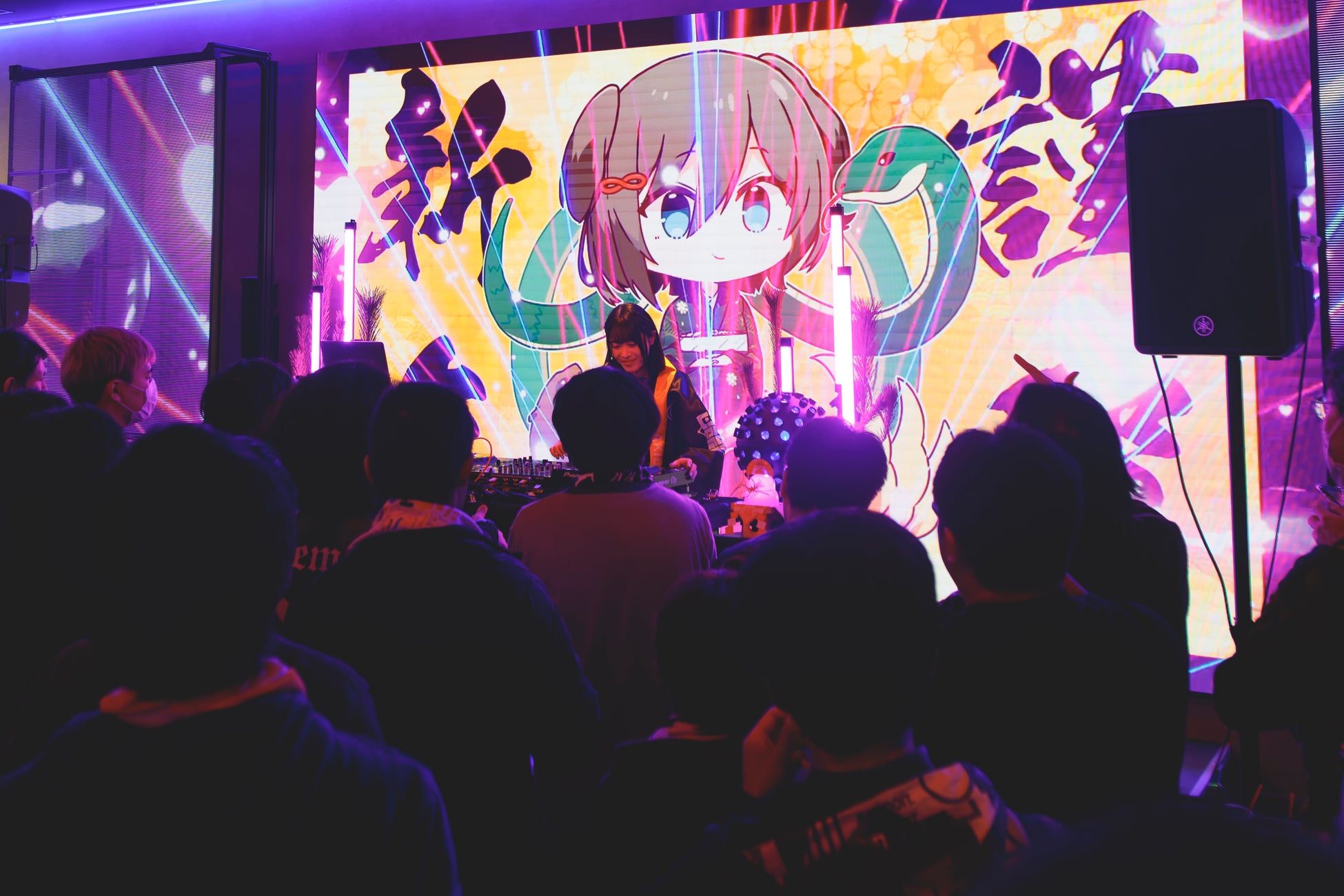「電音部」スペシャルステージの様子。DJがアニメ・ゲームソングをプレイし、大盛り上がり!