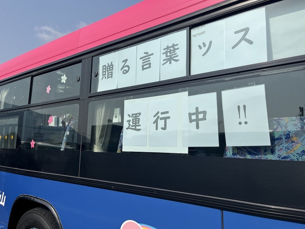 中国バス(本社:広島県福山市多治米町|https://www.chugokubus.jp/)では、通学でバスをご利用いただく卒業生の門出を祝うとともに、ご乗車いただくお客様にはあたたかいメッセージで、あたたかい気持ちになっていただければと、2023年3月10日(金)より、学校の先生や自治体の職員の方にご協力いただいた贈る言葉にあふれた特別車両「贈る言葉ッス」の運行を開始しました。