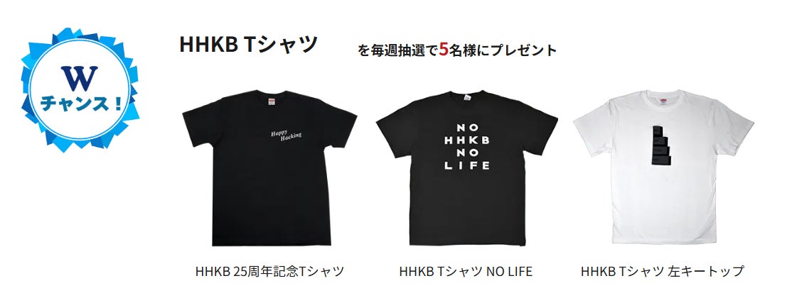 3種類のHHKB Tシャツの中から、ランダムに1枚をプレゼント!