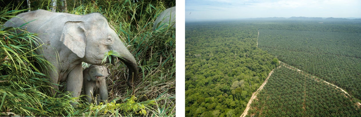 対象商品の売り上げ(※メーカー出荷額)の1%でボルネオ島の野生動物の救出活動や、農地を買い戻して熱帯雨林へと再生し、野生生物の生息域となる「緑の回廊」を実現する活動を続けています。また、世界中で需要が高まる“パーム油”の問題に向き合い、パーム油・パーム核油を使用する国内家庭用製品において、RSPO認証(環境や人権等に配慮して生産されたパーム油の認証制度)を100%取得し、普及に努めています。
