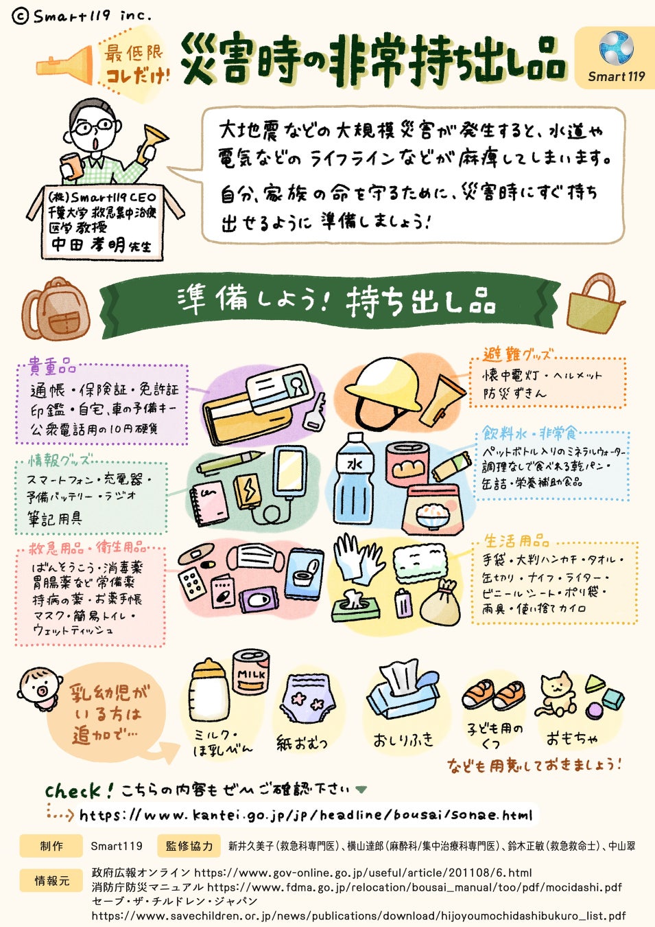 自分、家族の命を守るために、災害時にすぐに持ち出せるように準備しましょう!