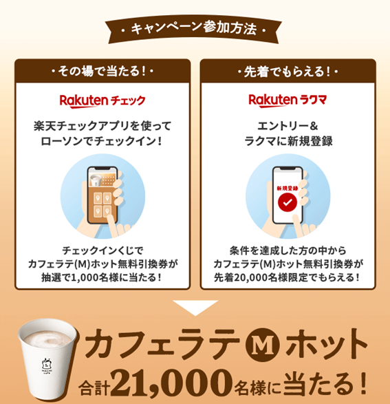 その場で当てる? 先着でもらう? 「楽天チェック」と「ラクマ」、「マチカフェ カフェラテ(M)ホットプレゼントキャンペーン」を実施