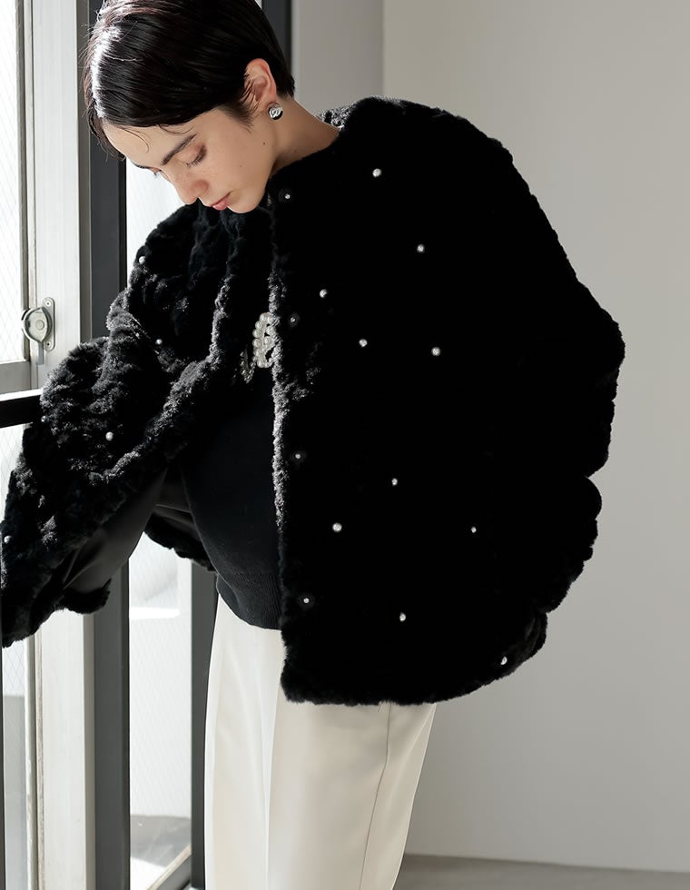 パールモチーフフェイクファーコート