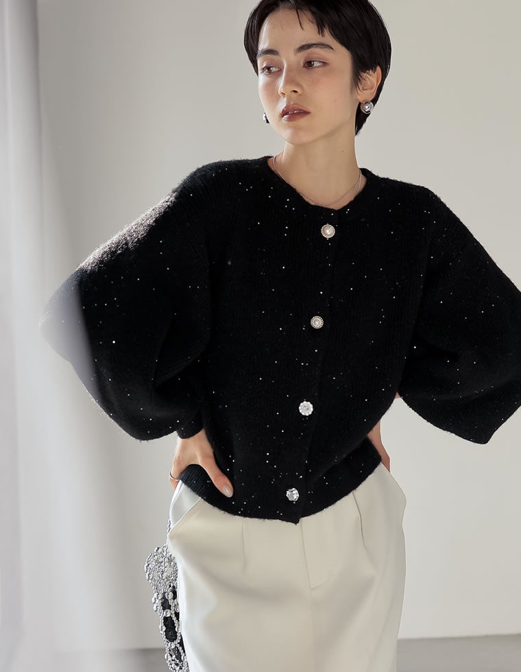 デコラティブスパンコールラメニットカーディガン