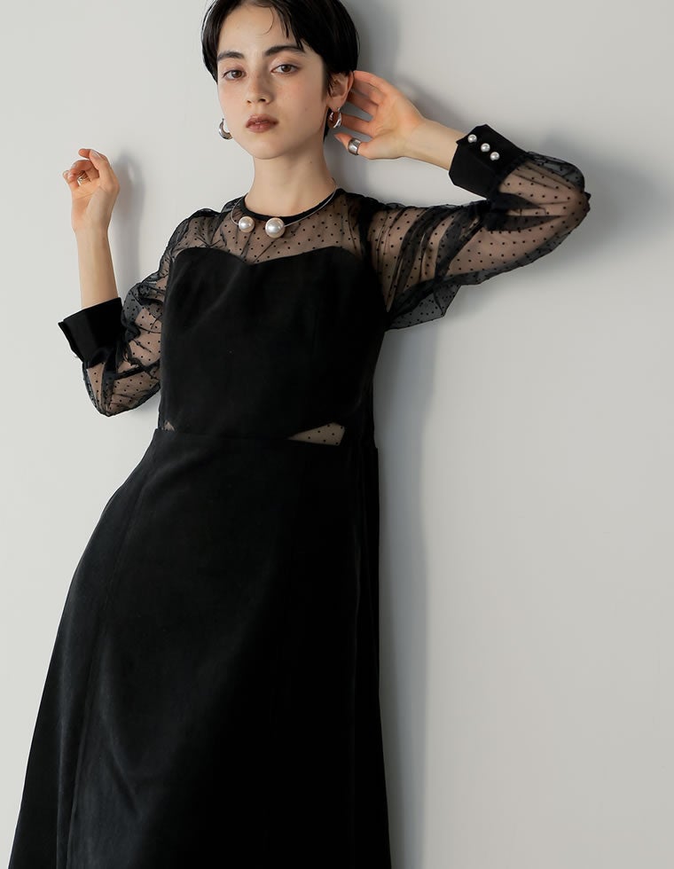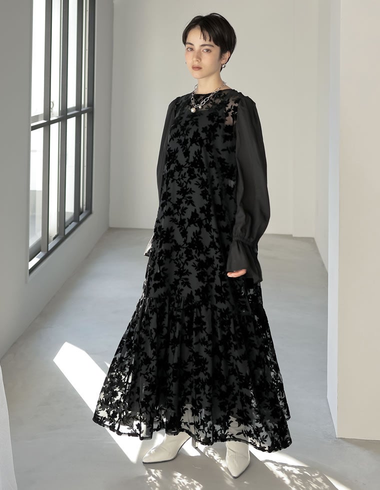 シアーベロアフラワーティアードワンピース