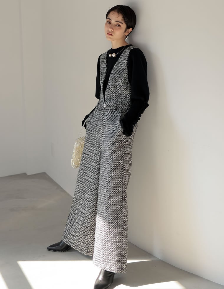 2WAYビジューボタンツイードサロペット
