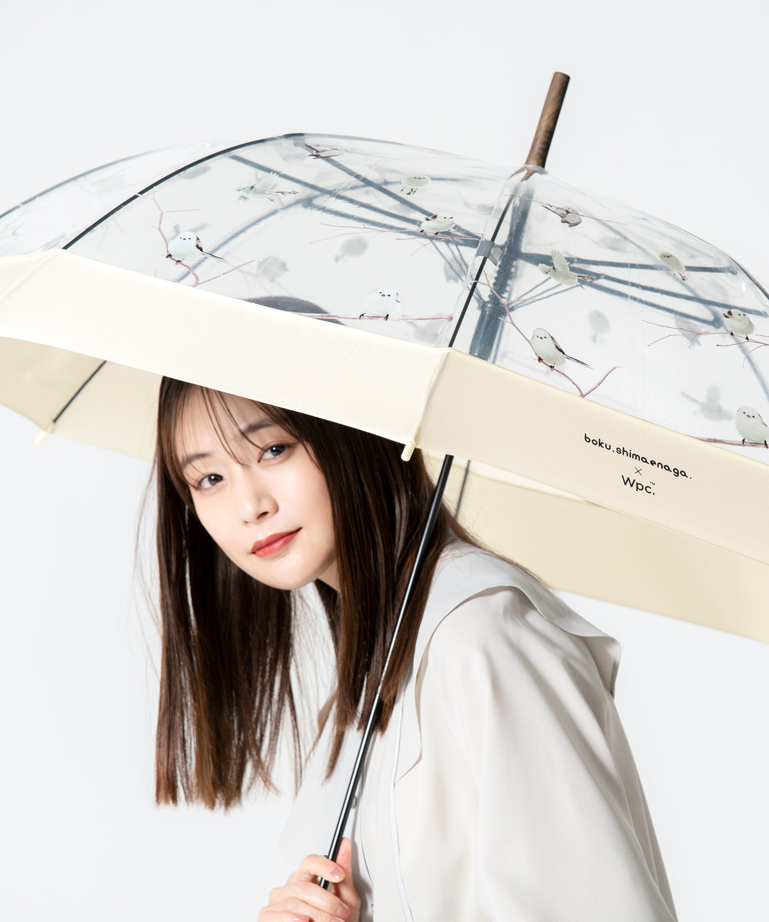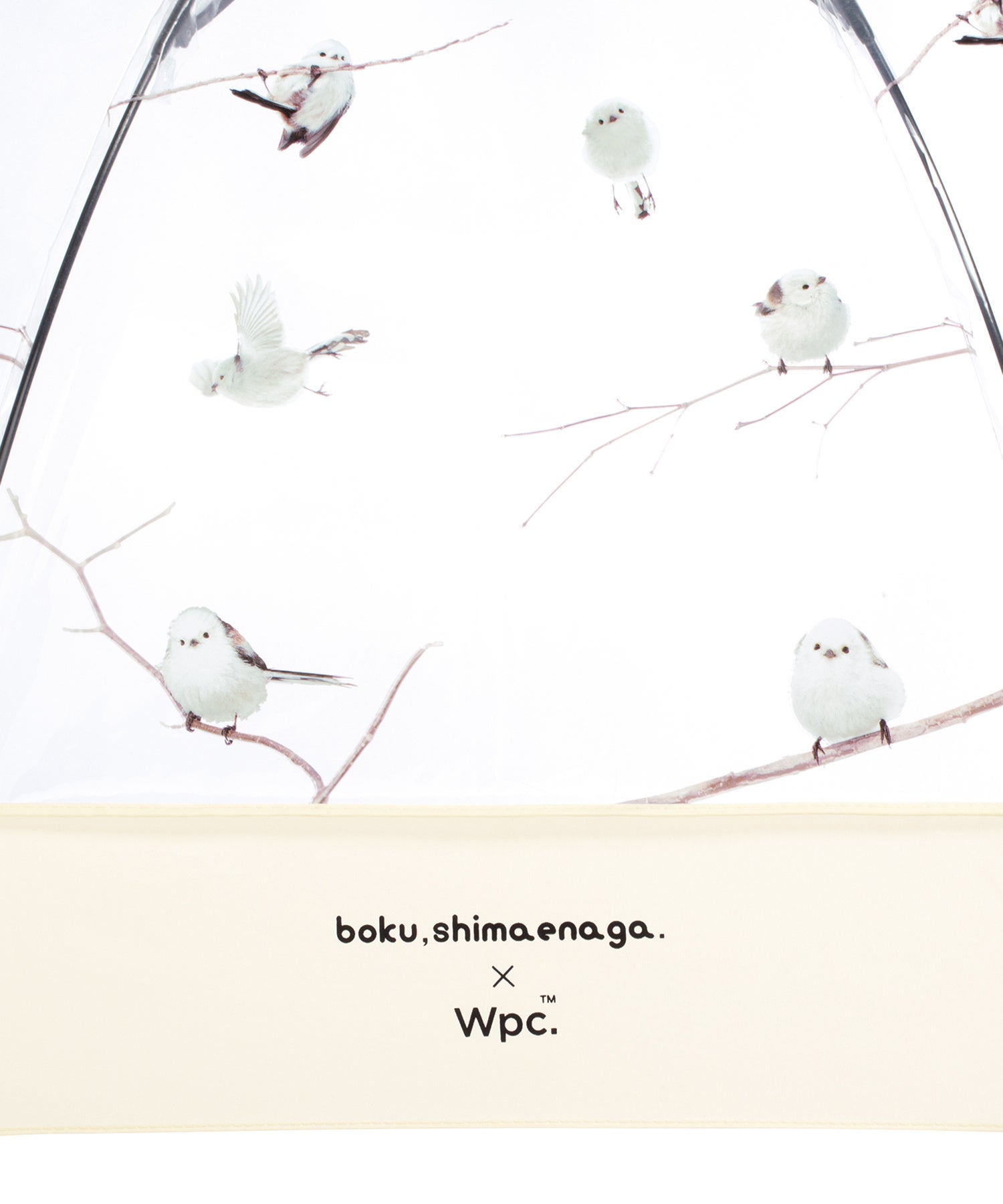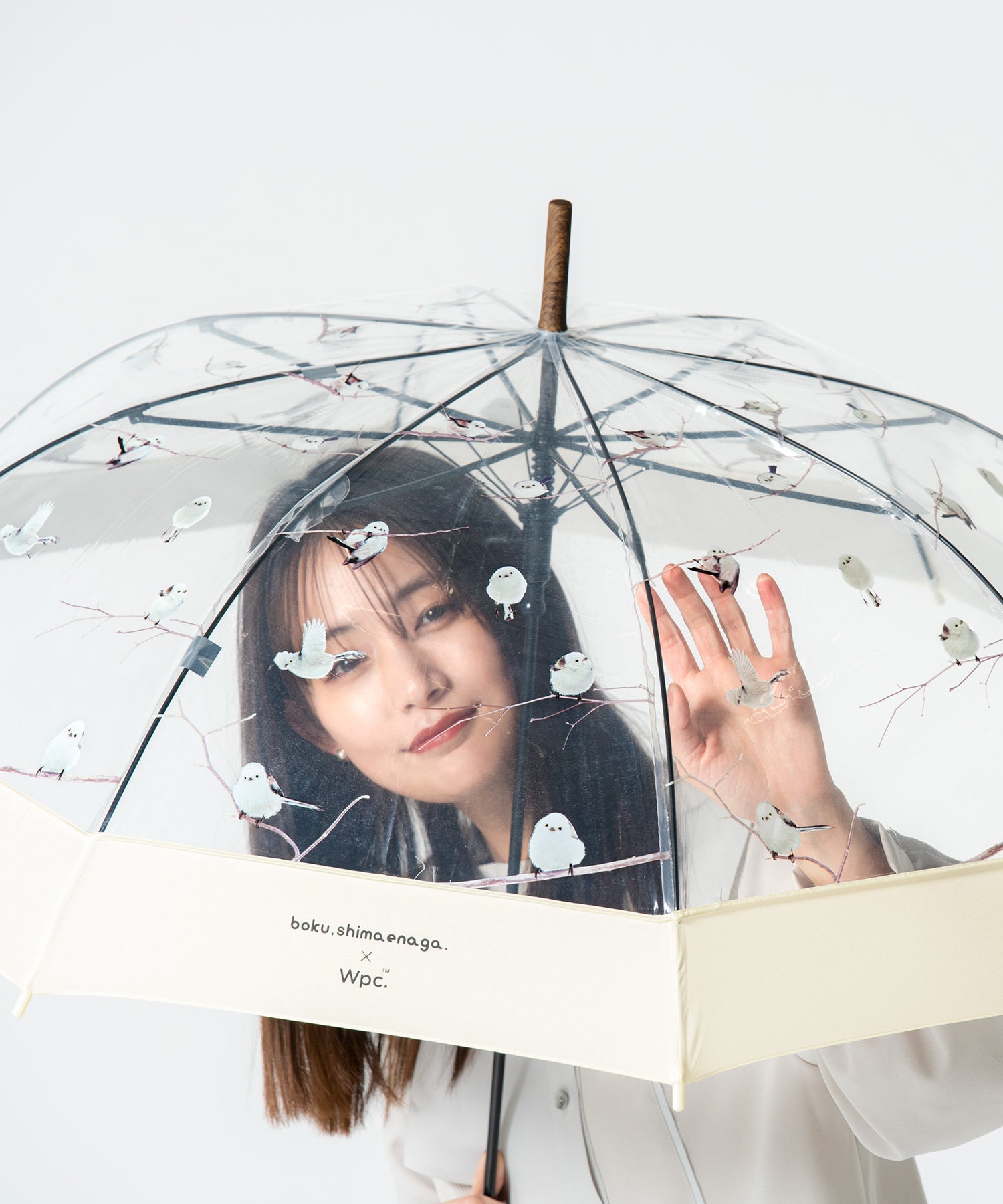 北海道に生息し、真っ白でふわふわな姿から”雪の妖精”と呼ばれるシマエナガ。丸いフォルムやつぶらな瞳が可愛いと親しまれている人気の野鳥です。今回Wpc.はシマエナガを撮影する写真家・やなぎさわごうさんの『ぼく、シマエナガ。』と初コラボレーション。首をかしげて木の枝にちょこんとたたずむ姿、羽を大きく広げて飛ぶ様子、ひそかにファンの多い”懸垂ポーズ”など、やなぎさわさんが撮影する愛くるしいシマエナガをビニール傘にデザインしました。持ち手はブラウンの木目調で、シマエナガが住む森の世界観を表しています。