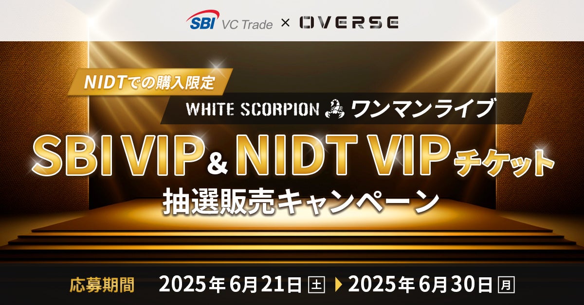 【SBI VCトレード×オーバース】NIDTでの購入限定WHITE SCORPIONワンマンライブSBI VIP&NIDT VIPチケット抽選販売キャンペーン