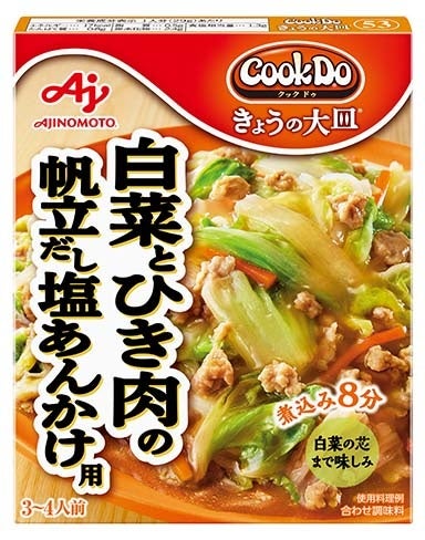 「Cook Do® きょうの大皿®」<豚バラほうれん草用><白菜とひき肉の帆立だし塩あんかけ用>新発売~肉と野菜をバランスよく食べられる、新定番のメイン和風おかず用調味料~