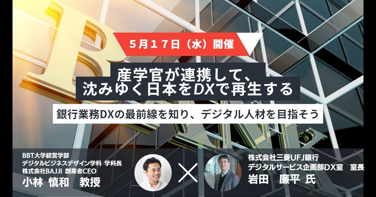 本セミナーでは、ビジネス・ブレークスルー大学のデジタルビジネスデザイン学科長である小林慎和先生と株式会社三菱UFJ銀行デジタルサービス企画部DX室長の岩田廉平氏が登壇し、銀行業務のDXを推進することにより、銀行業務やビジネスモデルが今後どのように変わっていくのかについて対談します。