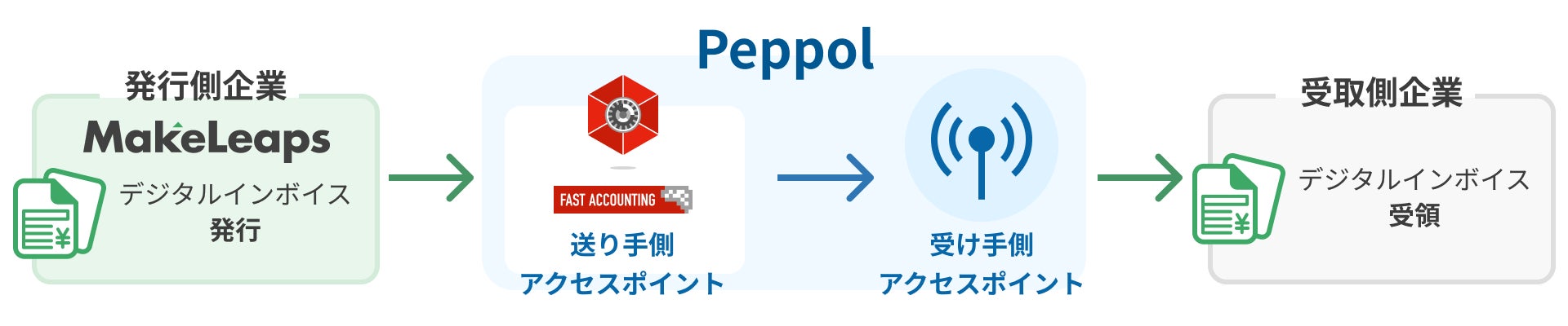 ファーストアカウンティング株式会社(本社:東京都港区、代表取締役社長:森 啓太郎、以下「ファーストアカウンティング」)は、リコーグループのメイクリープス株式会社(本社:東京都目黒区、代表取締役社長:岡田 泰、以下「メイクリープス」)が提供するクラウド型請求管理サービス「MakeLeaps(メイクリープス)」において、当社のPeppol Access Pointが採用されたことを発表いたします。
