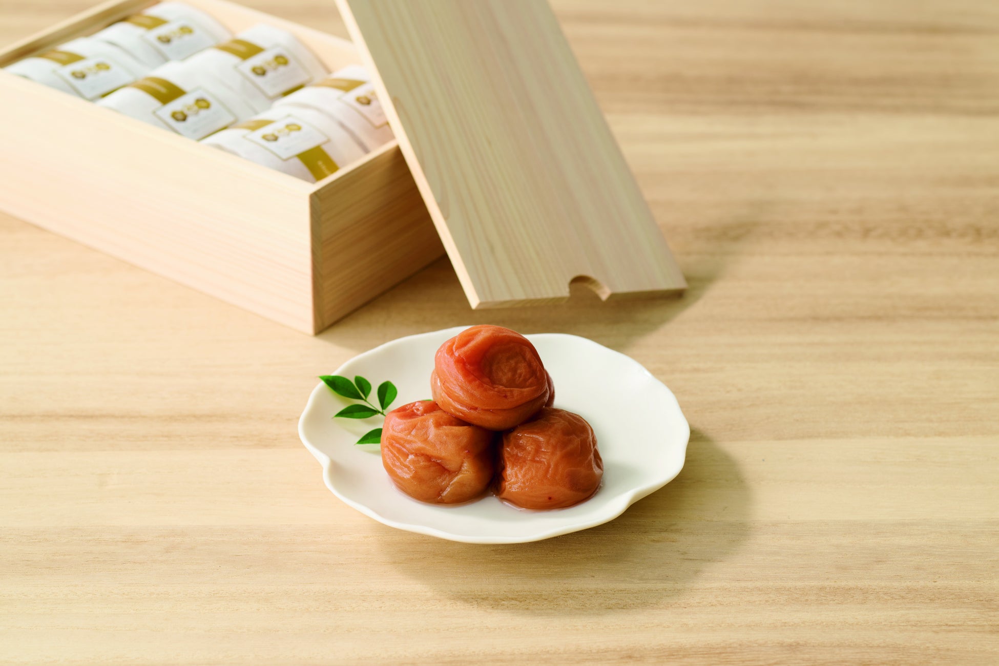 契約農家で丁寧に栽培された大粒の紀州南高梅を低塩漬けにし、希少な銀座はちみつで上品な風味に仕上げました。樹齢100年以上の紀州檜の木箱に詰めてお届け。