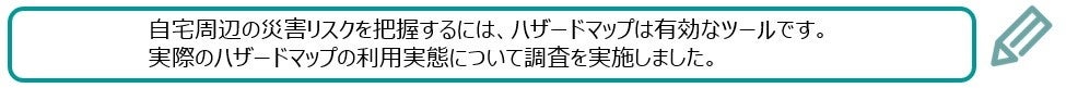 日本は、地質、気象など自然災害の条件から台風や、豪雨、地震などによる災害が発生しやすく、近年、災害が多発・甚大化しており、自宅周辺の災害リスクに関する意識は高くなっています。ハザードマップにより自宅周辺の自然災害リスクを把握している人は多い傾向にはあるものの、ハザードマップの見方やその活用法、防災・減災の準備という点では、不十分であることが見受けられます。