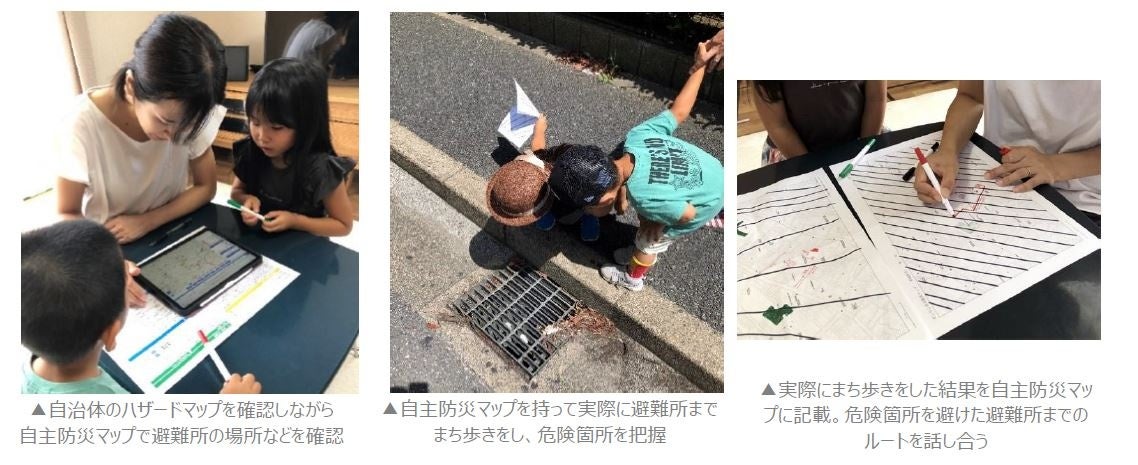 自宅周辺を家族でまち歩き。オリジナルの防災マップを活用