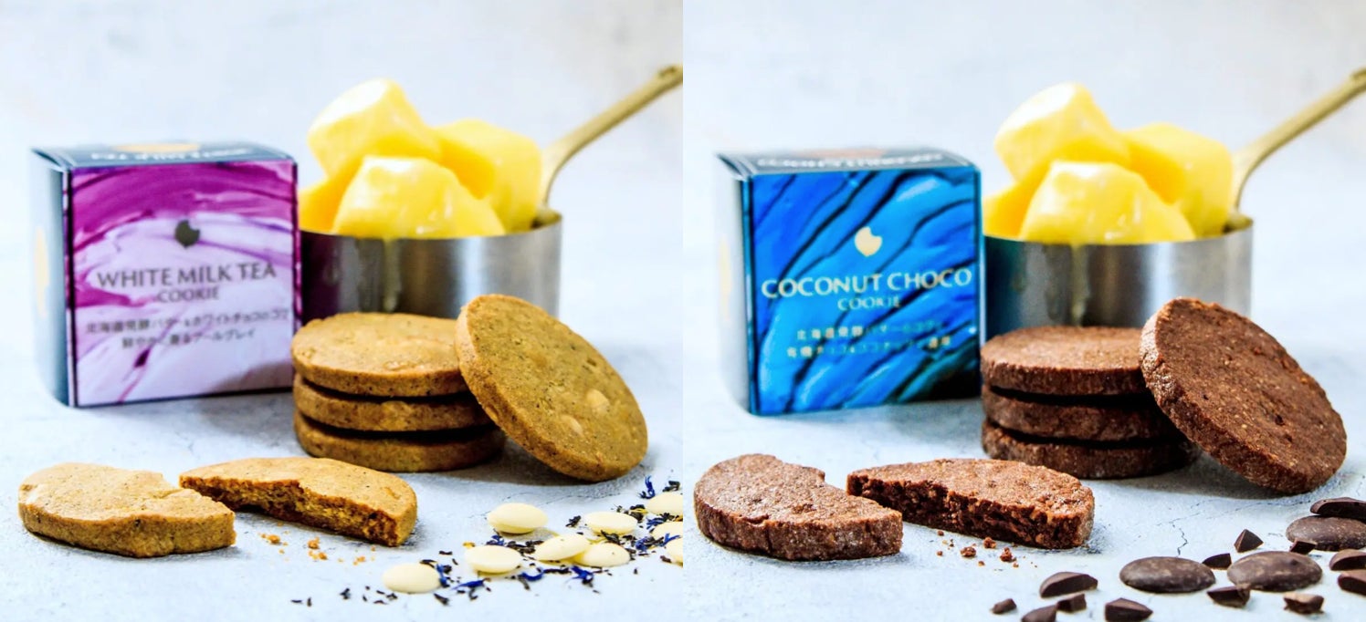 toroaの極上クッキー専門店ツキノワ星菓より、北海道発酵バター香るバターリッチクッキー新商品のミルクティーホワイトチョコクッキーとココナッツチョコクッキーを発売